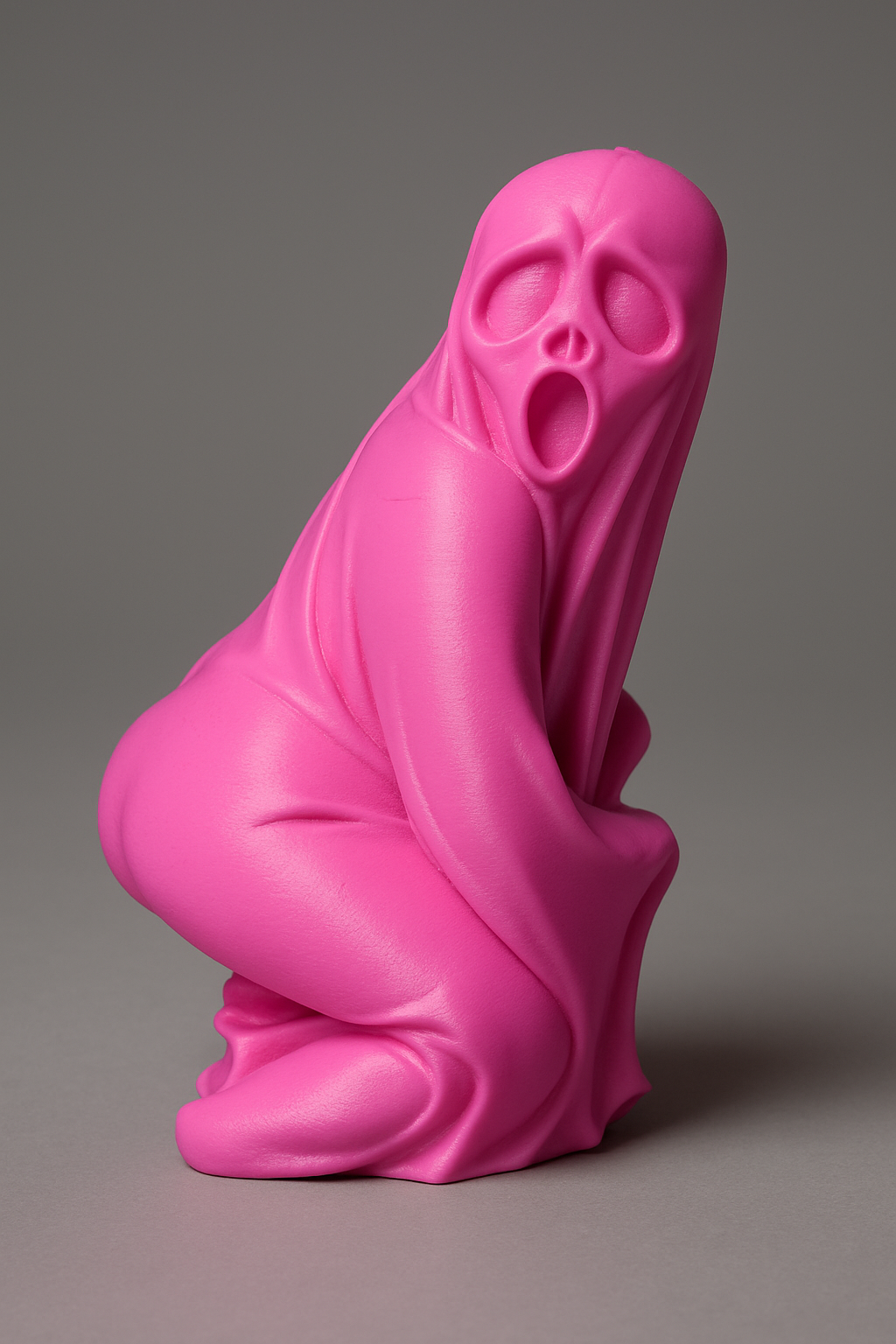 This vibrant hot-pink 3D-printed sculpture blends humour, attitude and artistic style into one eye-catching piece. Designed with smooth, flowing fabric-like contours and a bold expressive face, the figure sits in a dramatic crouched pose that instantly grabs attention. The studio-style finish highlights the clean print quality, soft curves and detailed shaping, making it perfect as a statement décor item, desk ornament or collectible art piece.