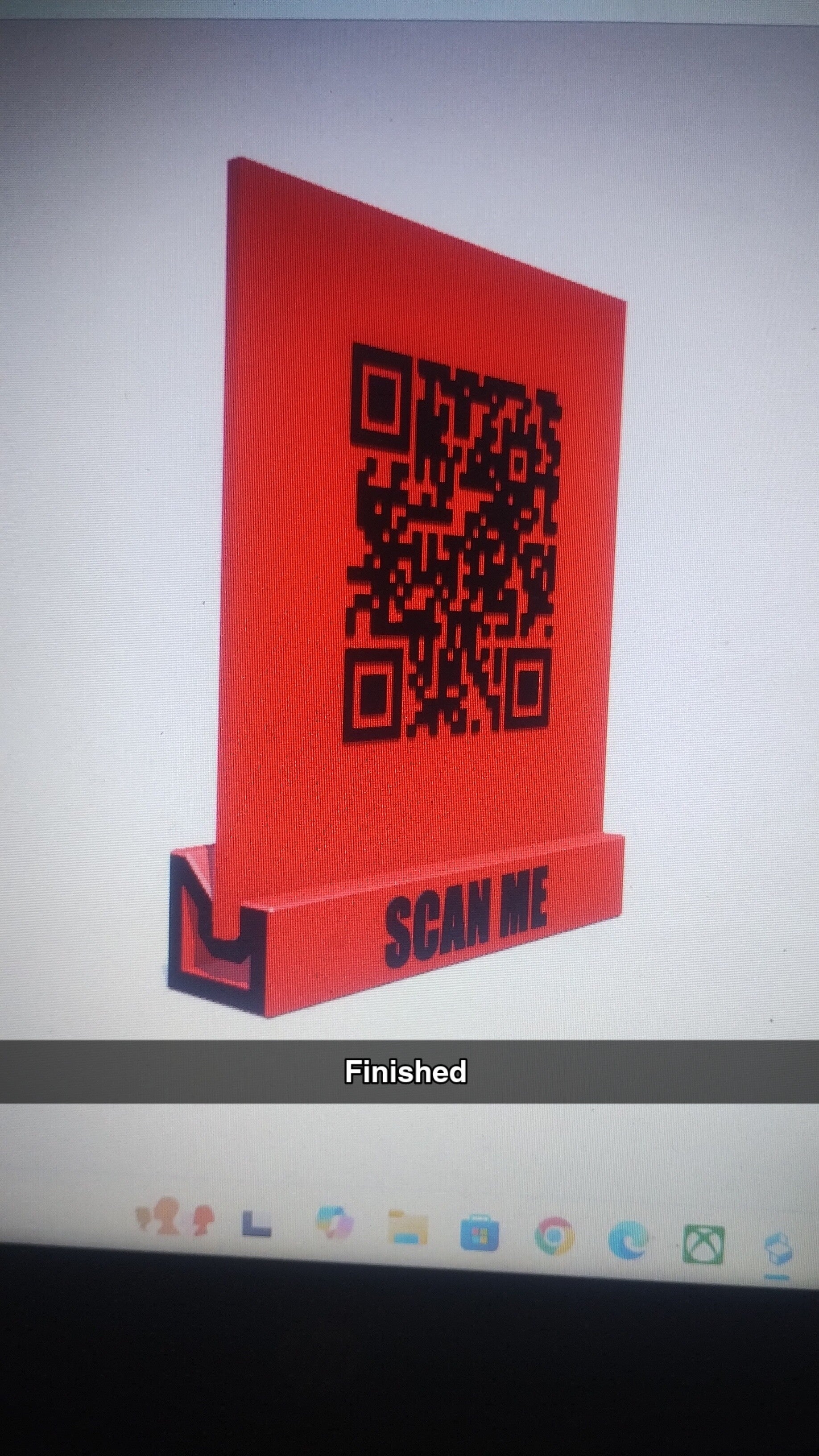 A sleek and practical 3D-printed QR code stand designed to make sharing links quick and effortless. The upright panel prominently displays a scannable QR code, allowing customers to instantly access a website, social media page, payment link, or digital business card.